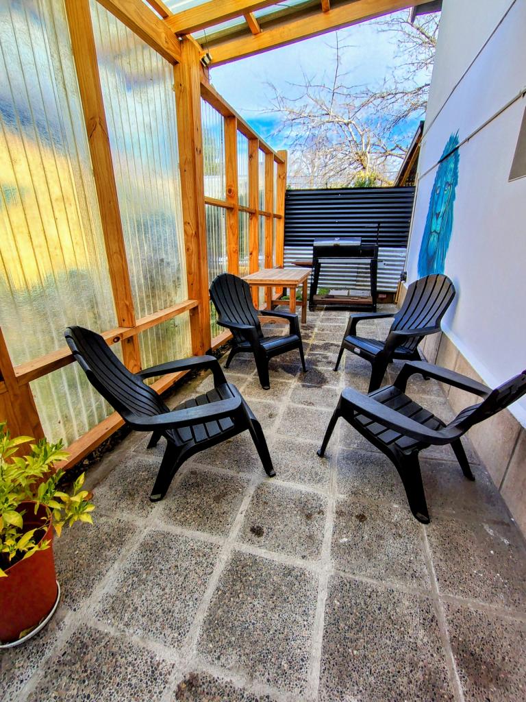 - Exterior: Patio trasero con sector para fumadores y parrilla móvil.